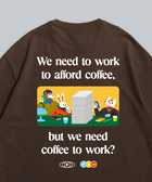 We work to afford coffee, but we need coffee to work? This oversized boxy cut tee captures the paradox we live daily. Crafted from 100% cotton, it's soft, comfy, and mildly existential—perfect for those fueling the grind with every sip. Made for overthinkers, overworkers, and over-caffeinators.